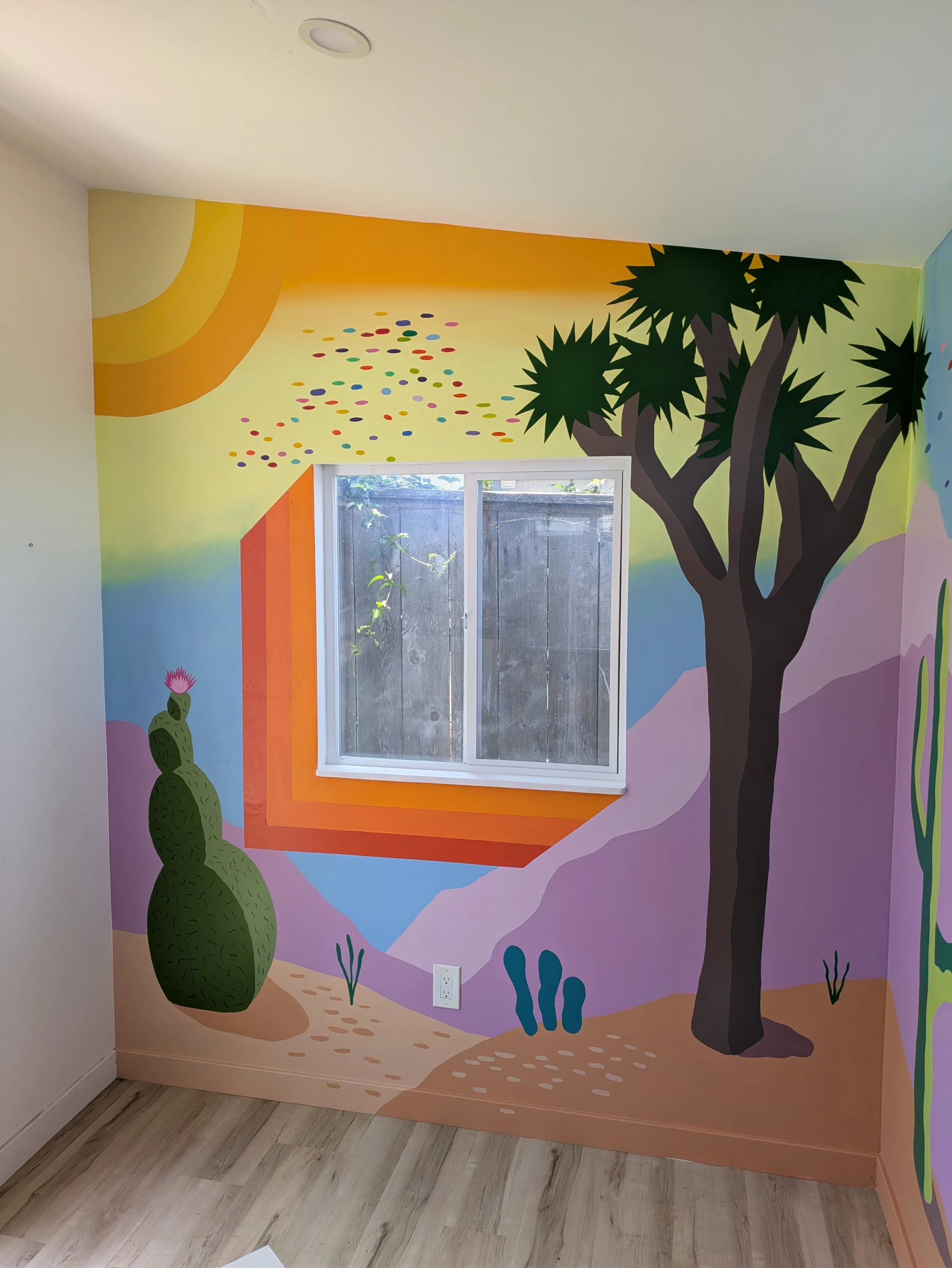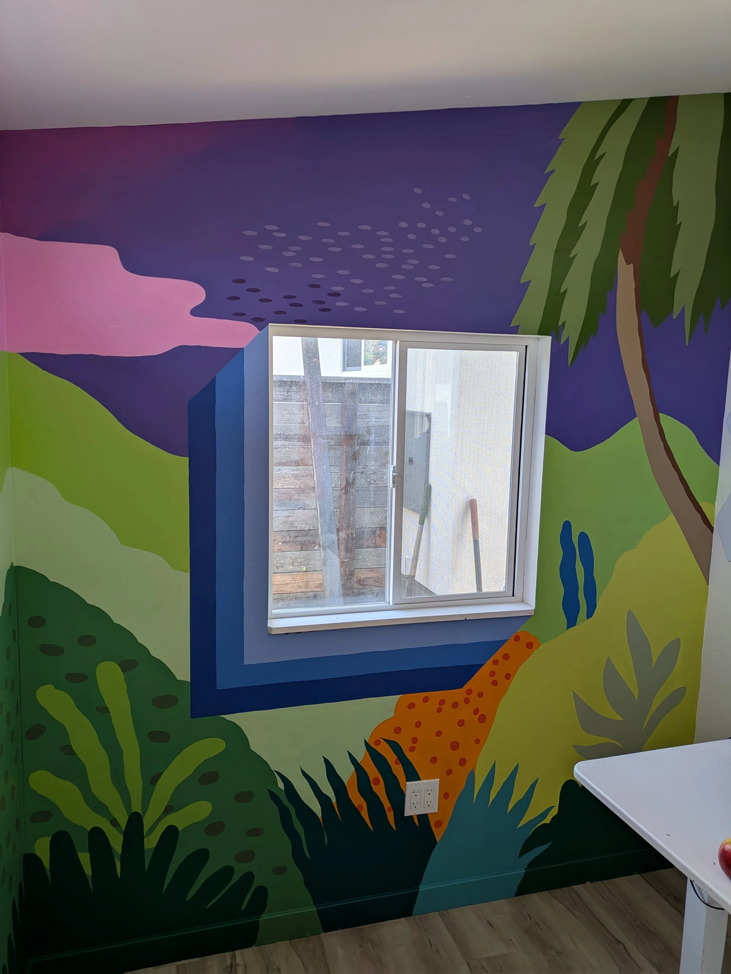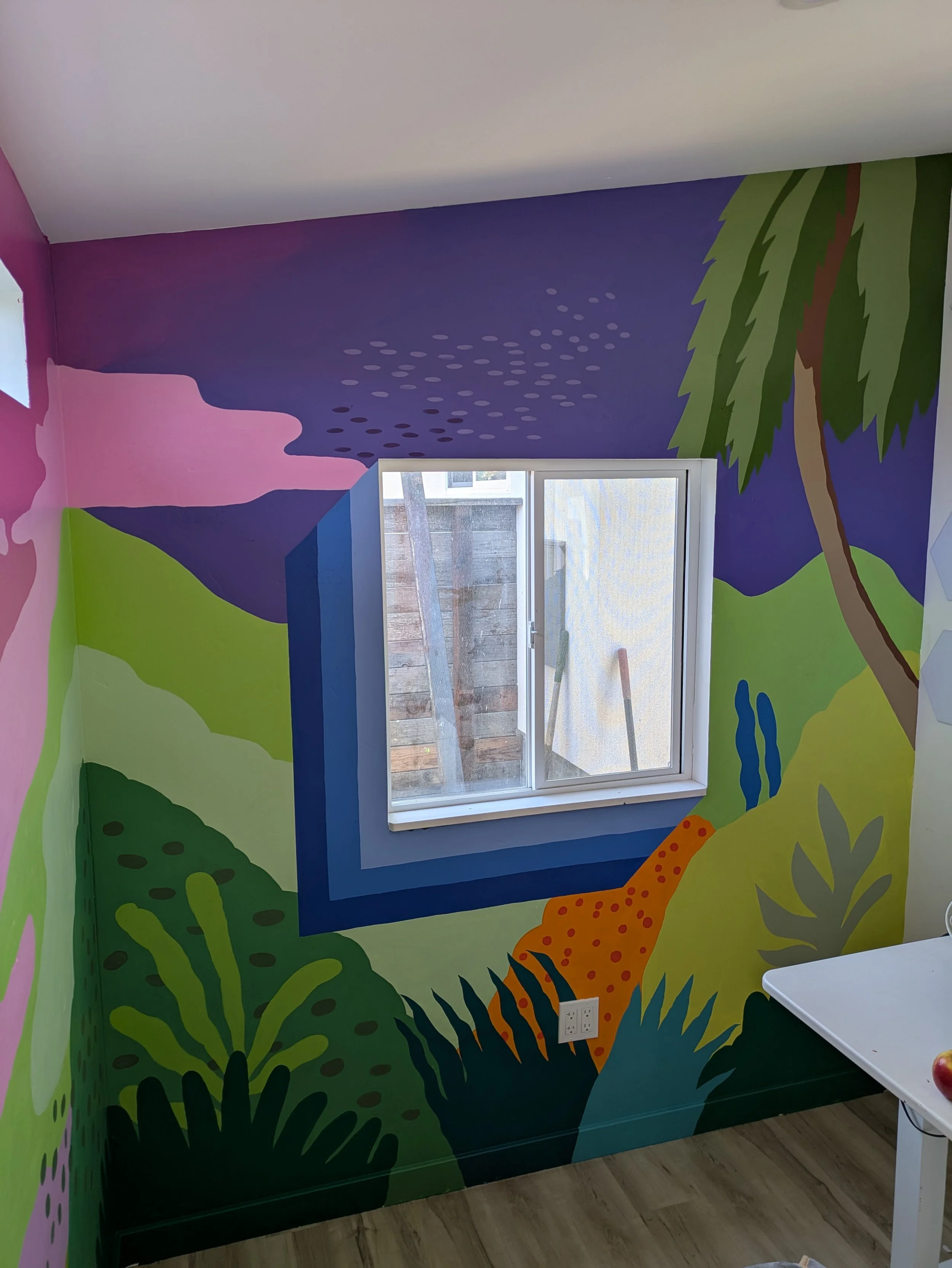 Thrive Mind Collective reached out to us for a home office mural to punch up their space. Bright colors and fun flora makes this piece a huge hit and a fun space to work in.